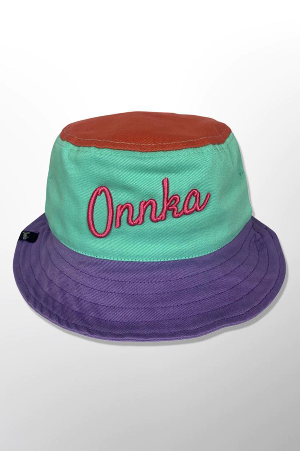 O Bucket Hat tem o estilo clássico do "chapéu de pescador", 100% algodão, nas cores laranja, verde e roxo com bordado em rosa escrito Onnka. Possui regulador de metal e modelagem unissex. Produzido e vendido pela marca Onnka.