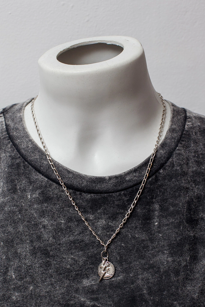 Como eu amo uma corrente! Elas dão o peso certo ao look, com a sua presença marcante e o brilho maravilhoso do metal. Melhor ainda com DOIS pingentes em um colar só: uma medalha e um raio trazendo aquele ar cool e descontraído ao seu visû! Disponível na opção prateado.