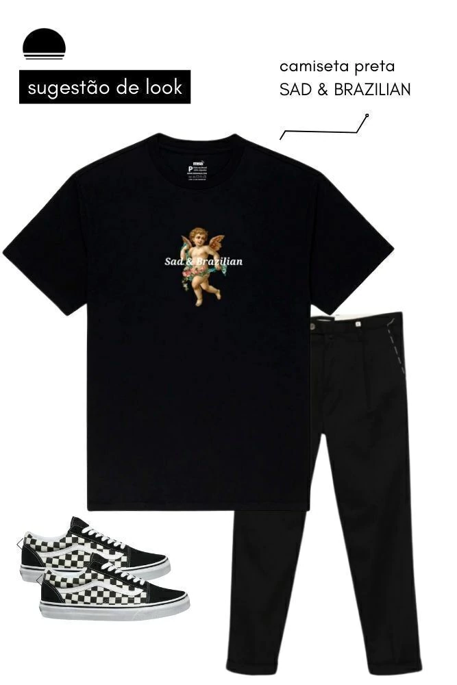 A Camiseta Preta Sad & Brazilian traz uma mensagem poderosa! Sad and Brazilian: a vida é dura, mas a resiliência e a ironia é nosso patrimônio. Essa peça é uma ode à força e à autenticidade do povo brasileiro!